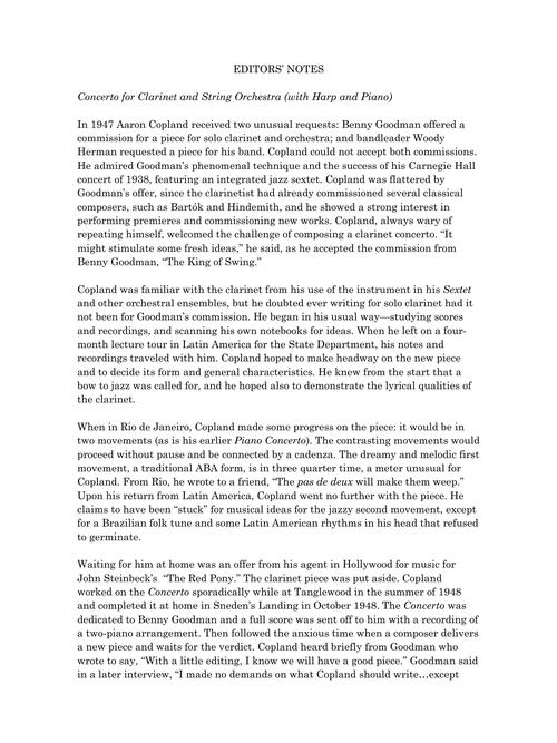 Clarinet and String Orchestra, with Harp and Piano New Edition