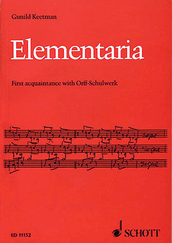 Elemantaria is a fundamental and practical handbook to Orff-Schulwerk . The author gives suggestions and examples without insisting dogmatically on one exclusive method. She offers well-tried solutions without excluding other possibilities and individual variations. It is not only a valuable personal document, but also a practical and essential guide for educationalists concerned with Orff-Schulwerk. The book is divided into two sections: Part One includes rhythmic, melodic and speech exercises. Part Two contains a detailed study of elementary movement training. There is an important appendix, with illustrations, on how to play the instruments used in the earley stages of teaching. Music examples, movement diagrams. Illustrated. Author's Preface · Part One: Rhythmic-Melodic Exercises · Fundamentals · Rhythmic Exercises · Disposition and posture · Reaction trainig · Finding 'rhythmic building bricks' · Games with 'rhythmic building bricks' · Leading a group, making up accompainments, completing phrase · Melodic Exercises · Disposition and posture when playing barred percussion instruments · Accompaniements, songs, pieces · Making up accompaniements and completing phrases · Hints on the early stages of recorder playing · Speech Exercises · Word series and sayings with rhythmic accompainment · Part Two: Elementary Movement Training · Introduction · Reaction training · Gymnastic exercises · Movement training · Movement variations and combinations · Movement pieces · Elementary movement improvisation · Movement accompaniment · Suggestions for movement lessons for beginners · Appendix