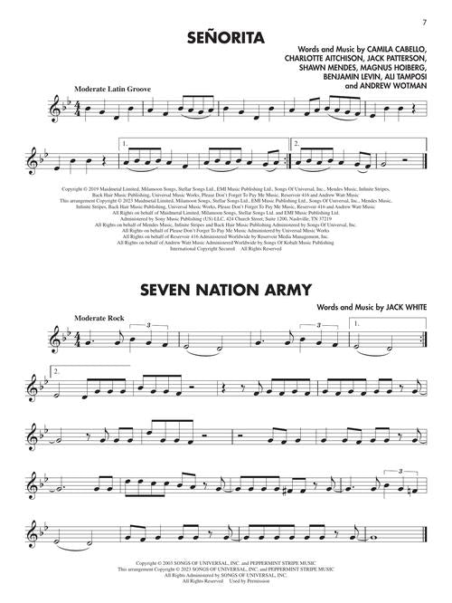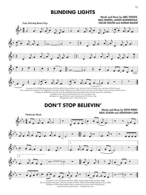 3 popular melodies at an easy level in solo books for all the instruments in the Essential Elements Band Method. Perfect motivational music for students to play and practice featuring songs by Billie Eilish, Queen, Shawn Mendes, Taylor Swift, Star Wars, The Avengers, and more! Titles include: Believer · Blinding Lights · Don't Stop Believin' · Dynamite · Hallelujah · The Imperial March (Darth Vader's Theme) · Let It Go · Señorita · Seven Nation Army · Sucker · This Is Me · We Are the Champions · Wildest Dreams · You Will Be Found · and more.