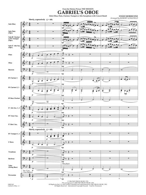 Oscar-winning composer Ennio Morricone has provided Hollywood with some of its monumental film scores, including the engaging music from The Mission. This beautiful and flexible setting for soloist and band can feature oboe, flute, clarinet, trumpet, or alto sax. Dur: 2:55