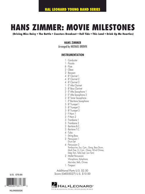 Over the past three decades Hans Zimmer has created some of the most dynamic and memorable movie themes to hit the silver screen. With styles ranging from excitement and intensity to delicate and whimsical, here's an effective medley for the concert stage featuring familiar melodies from Driving Miss Daisy, Gladiator, Madagascar, Crimson Tide, The Lion King and Pirates of the Caribbean.
