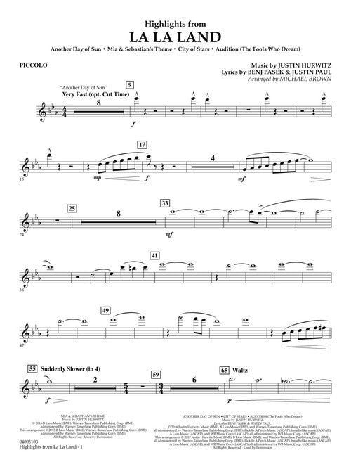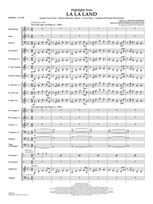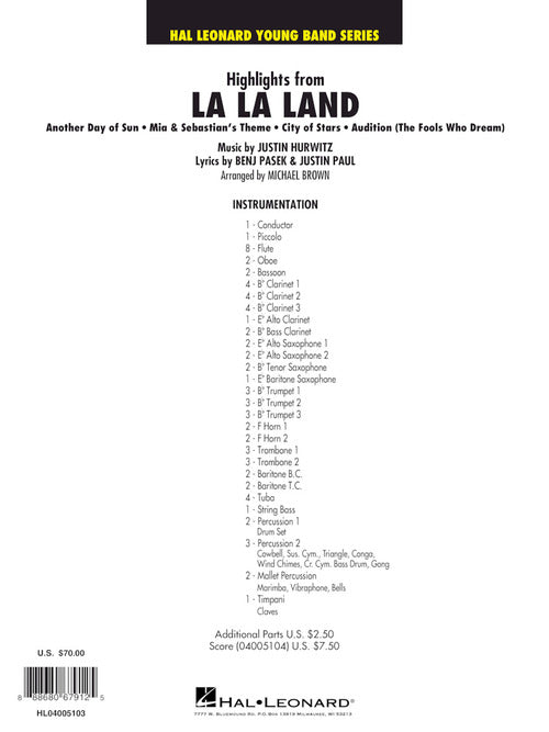 The critically acclaimed and widely popular movie musical La La Land features fresh-sounding songs and an award-winning soundtrack. Beautifully scored for concert band, this medley includes Another Day of Sun, Mia & Sebastion's Theme, City of Stars and Audition (The Fools Who Dream).