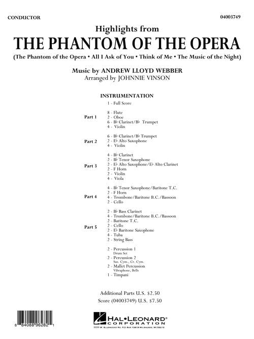 Scored for flexible instrumentation, here is a marvelous setting of these dramatic and poignant songs from Andrew Lloyd Webber's timeless classic. Includes: The Phantom of the Opera, All I Ask of You, Think of Me, and The Music of the Night.