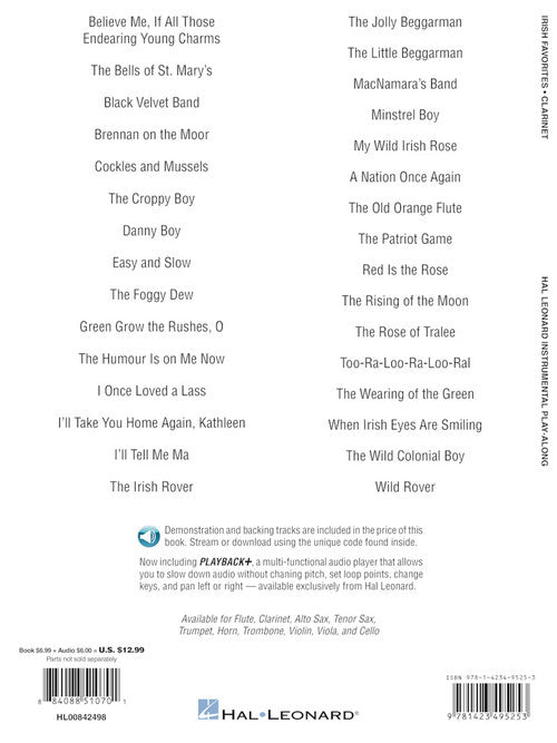 Solo arrangements of 31 Irish favorites with great-sounding accompaniments. Includes: Danny Boy · I Once Loved a Lass · The Little Beggarman · The Minstrel Boy · My Wild Irish Rose · The Wearing of the Green · and dozens more! Audio is accessed online using the unique code inside the book and can be streamed or downloaded. The audio files include PLAYBACK+, a multi-functional audio player that allows you to slow down audio without changing pitch, set loop points, change keys, and pan left or right.