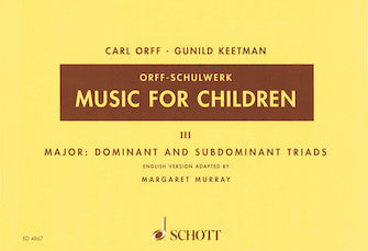 Carl Orff devoted much of his life to music for children. His pioneering work continues under the guidance of teachers and educators in many countries. The five basic German volumes of Music for Children by Carl Orff and Gunild Keetman were published between 1950 and 1954. The considerable growth of Orff-Schulwerk in the United States led to the publication of the American Edition (1977) to satisfy the requirements of a different educational system and national heritage. Music for Children is a stimulating source of material for music teaching. Contents of this third volume: The instrumentation and range of keys are increased. The settings include the chords on the fourth and fifth notes of the major scale. The Dominant Triad: If all the world were paper · Bass parts for timpani · For recorder and timpani · The riddling knight · Ten short pieces for dancing · Carillon de Vendôme · The old woman and her pig · A good-night · Morning · Other Keys: Deux chansons de jeu: Sur le pont d'Avignon · En revenant de Versailles · No John, No · Beauty's spell · Riddles · The Sudominant Triad: Street song · Pieces for xylophone · The man in the moon · Malbrough · Dance-song · Festive procession · Lord Thomas of Winesbury · Dashing away with the smoothing-iron · Sevenths and Ninths: This old man · Fior di viola · La Violette · Rundadinella · Sacred yodelling song · Mater et filia · Polka from the Ennstal · Two polkas · English dances: Rufy Tufty · Rakes of mallow · Hunt the squirrel · Up tails all · The phoenis · Time-change dances · Two dances for singing and playing: Dance-song · Hector Protector