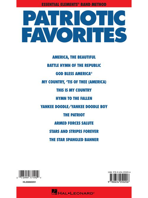 Here is the ultimate collection of Patriotic songs arranged to be played by either full band or by individual soloists (with optional accompaniment CD). For each song in the individual student books, there is a page for the full band arrangement as well as a page for solo use. In the same popular format as Michael's Movie Favories and Broadway Favorites, each arrangement in Patriotic Favorites is correlated with a specific page in the Essential Elements 2000 Band Method. However, you don't need to be using this particular method to enjoy these wonderful arrangements! Includes: America, The Beautiful; America (My Country, 'Tis of Thee); Armed Forces Salute; Battle Hymn of the Republic; God Bless America; Hymn to the Fallen; The Patriot; The Star Spangled Banner; Stars and Stripes Forever; This Is My Country; Yankee Doodle/Yankee Doodle Boy.