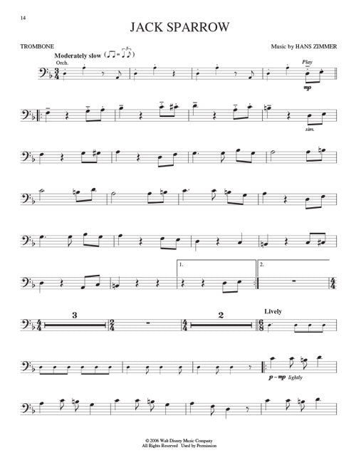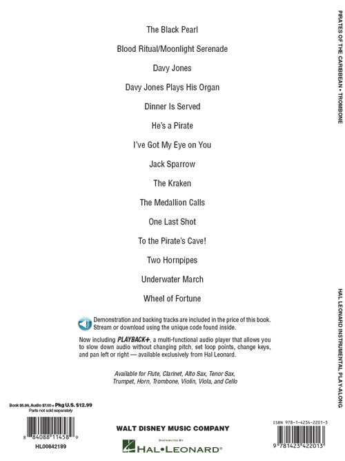 16 pieces from the swashbuckling blockbuster, including: The Black Pearl · Davy Jones · He's a Pirate · I've Got My Eye on You · Jack Sparrow · To the Pirate's Cave! · Wheel of Fortune · and more. The book also includes access to online accompaniment tracks for practice and play-along fun!