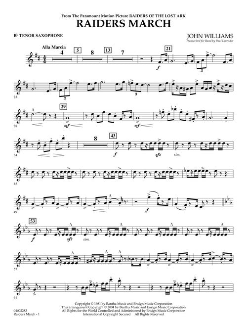 One of the most performed movie themes of all time! Under the careful guidance of Mr. Williams himself, this edition has been faithfully transcribed for wind band and offers a stunning production for the concert stage. Performance time - ca. 5:00