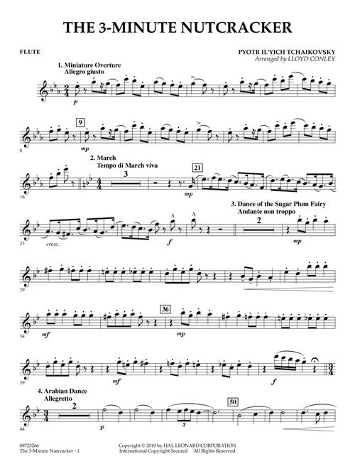 Here are all your favorite Nutcracker themes rolled into a clever and lighthearted medley. For added excitement, appoint an official time keeper and use a big hourglass-type egg timer or a projected digital stopwatch so the audience can track your progress as the band frantically races to finish under 3 minutes. (An accelerando is built-in at the end in case you need to make up time!)