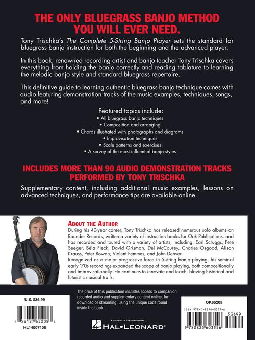 Written by Tony Trischka, world-renowned banjo player and songwriter as well as one of the leading authorities in banjo education, The Complete 5-String Bluegrass Banjo Player sets the standard for bluegrass banjo instruction from beginning to advanced. From holding the banjo and reading tablature to melodic banjo style and standard bluegrass repertoire, this book is the definitive guide to learning authentic bluegrass technique. The audio includes demonstration tracks of the music examples, techniques, and songs. The Complete 5-String Bluegrass Banjo Player features include: all bluegrass techniques; scale patterns; chords illustrated with photographs and diagrams; new and clear engravings; composition and arranging; improvisation techniques; the most influential banjo players' styles; and more! Audio is accessed online using the unique code inside the book and can be streamed or downloaded. The audio files include PLAYBACK+, a multi-functional audio player that allows you to slow down audio without changing pitch, set loop points, change keys, and pan left or right.