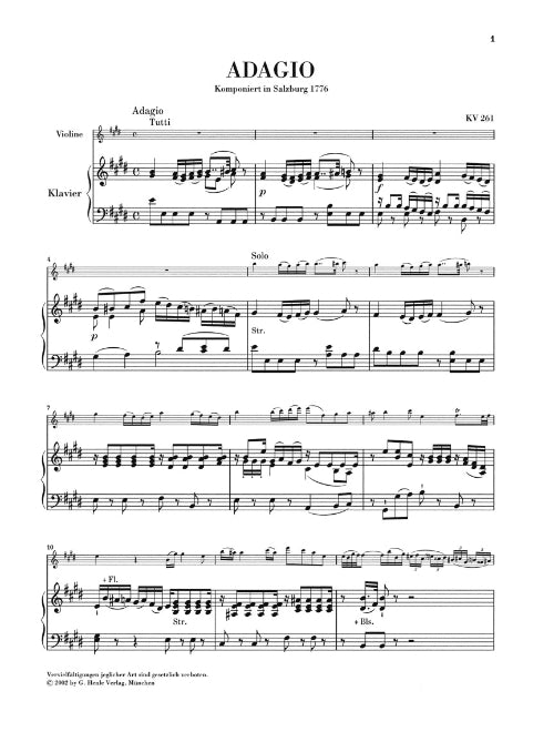For years Henle has been issuing urtext piano reductions of Mozart's works for violin and orchestra at six-month intervals. Now the time has come for the three single movements. These incomparable treasures of the violin literature are too well-known to require special praise here. Each solo part appears in an impeccable urtext edition accompanied by cadenzas, improvised lead-ins (Eingänge), fingering, and bowing marks. The piano reduction sounds beautiful and is easy to play - or, to quote Mozart's own words, it comes off as smooth as silk. Fing. Vl.: Kurt Guntner Cadenzas: Kurt Guntne Piano reduction: Siegfried Petrenz