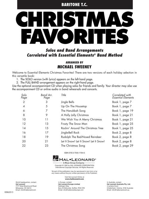 Arranger: Michael Sweeney Essential Elements Christmas Favorites Baritone T.C. Publisher: Hal Leonard Category: Band/Orchestra/Ensemble Series: Essential Elements Band Folios Format: Softcover A collection of Christmas arrangements which can be played by full band or by individual...Regular price $10.99 -