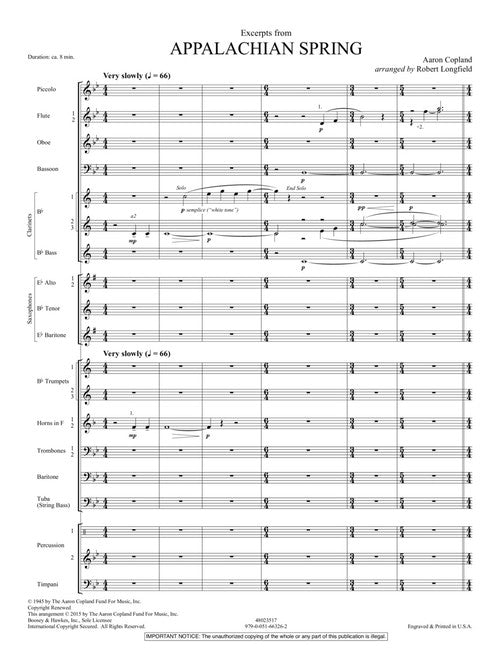 Composer: Aaron Copland Excerpts from Appalachian Spring Publisher: Boosey & Hawkes Category: Band/Orchestra/Ensemble Series: Boosey & Hawkes Concert Band Format: Paperback Written in 1943-44 as a ballet for Martha Graham, Appalachian Spring is one of Aaron...Regular price $125.99