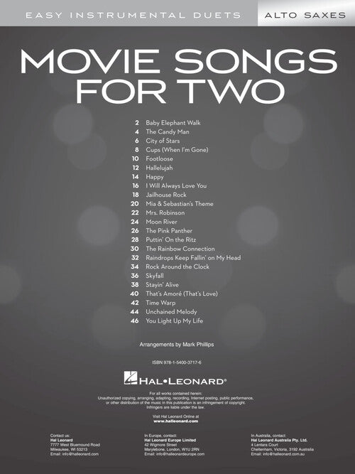 Movie Songs For Two Alto Saxes Easy Instrumental Duets