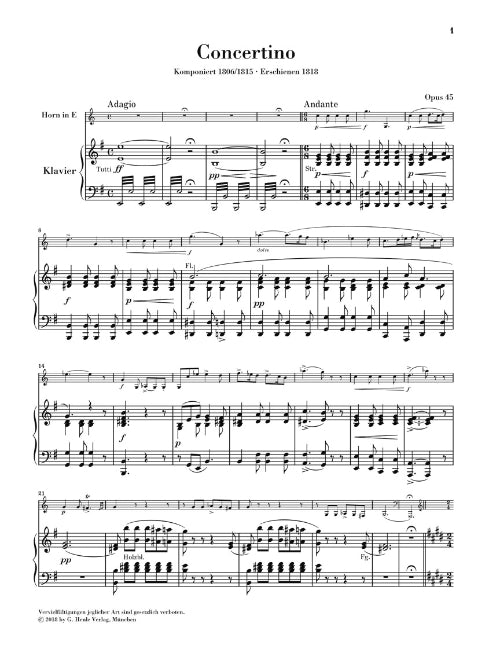 Carl Maria Von Weber Concertino Op 45 For Horn And Piano Reduction