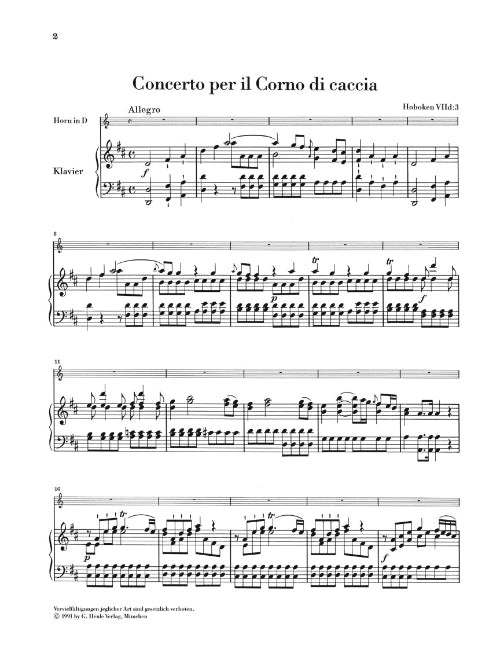 Franz Joseph Haydn Concerto For Horn And Orchestra D Major Hob Viid 3 Horn And P
