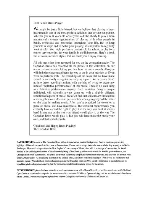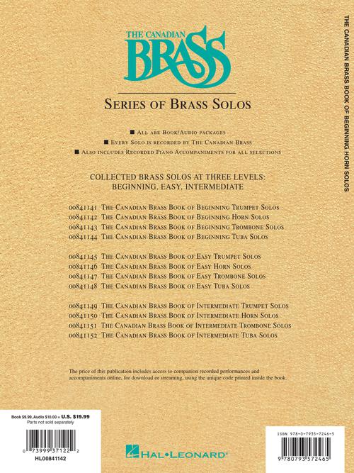 Artist: The Canadian Brass Canadian Brass Book of Beginning Horn Solos Book/Online Audio Publisher: Hal Leonard Category: Classical Series: Brass Format: Softcover Audio Online Horn part edited and recorded by Canadian Brass virtuoso David Ohanian, piano...Regular price $23.99 -