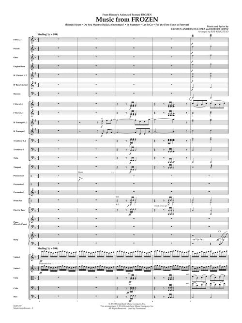 Composer: Kristen Anderson-Lopez Music from Frozen Publisher: Hal Leonard Category: Band/Orchestra/Ensemble Series: HL Full Orchestra Format: Paperback Includes: Do You Want to Build a Snowman?, For the First Time in Forever, Frozen Heart, In Summer, Let...Regular price $119.99