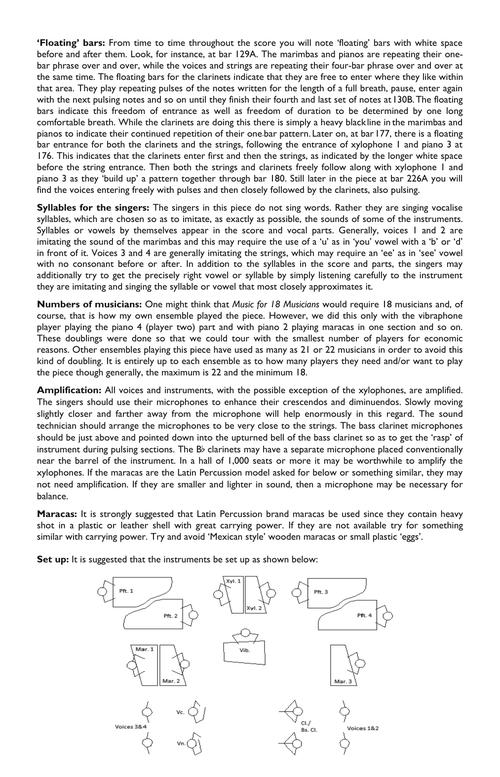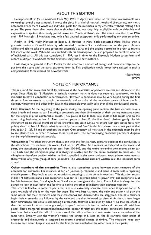 Music for 18 Musicians Study Score Publisher: Boosey & Hawkes Category: Band/Orchestra/Ensemble Series: Boosey & Hawkes Scores/Books Format: Paperback HPS 1239 Inventory # : 48002285 UPC: 73999277517 ISBN: 1423475526 Width: 6.75" Length: 10.5" Height: 0.55" Product...Regular price $83.99 -