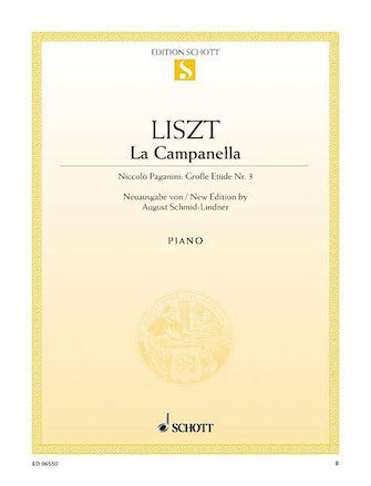 Composer: Franz Liszt La Campanella Niccolò Paganini: Great Study No. 3 Publisher: Schott Category: Keyboard & Piano/Vocal/Guitar Series: Schott Format: Paperback New edition edited by August Schmid-Lindner. Inventory # : 49008878 UPC: 73999506648 ISBN: Width: 9"...Regular price $9.99