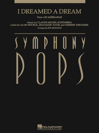 Composer: Alain Boublil I Dreamed a Dream (from Les Misérables) with Female Vocal Score and Parts Publisher: Hal Leonard Category: Band/Orchestra/Ensemble Series: Symphony Pops Format: Paperback Performance time - ca. 3:00 This stunningly beautiful ballad from...Regular price $389.99 -