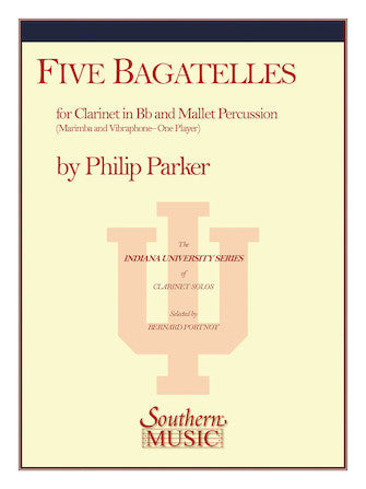 Composer: Philip Parker Five Bagatelles Clarinet Publisher: Southern Music Co. Category: Band/Orchestra/Ensemble Series: Southern Music Format: Paperback Five Bagatelles Clarinet Inventory # : 03775324 UPC: 884088753313 ISBN: Width: 9" Length: 12" Height: 0.065" Product Weight: 0.3...Regular price $23.99