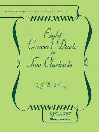 Composer: J. Beach Cragun Eight Concert Duets for Two Clarinets Publisher: Rubank Publications Category: Band/Orchestra/Ensemble Series: Ensemble Collection Format: Paperback Brilliant original pieces for intermediate to advanced players. Inventory # : 04470780 UPC: 73999707809 ISBN: 1540001431...Regular price $11.99