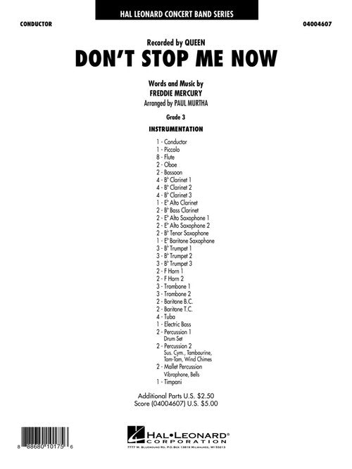 Don't Stop Me Now Publisher: Hal Leonard Category: Band/Orchestra/Ensemble Series: Young Concert Band Format: Softcover Although this tune by iconic band Queen met with a rather cool reception when it was first released in 1979, over...Regular price $71.99 -