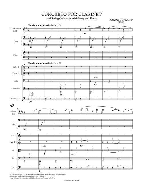 Concerto for Clarinet Clarinet and String Orchestra, with Harp and Piano New Edition Publisher: Boosey & Hawkes Category: Band/Orchestra/Ensemble Series: Boosey & Hawkes Scores/Books Format: Softcover New edition and engraving with detailed notes on the music....Regular price $53.99