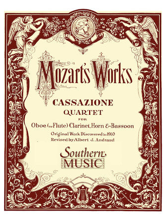 Composer: Wolfgang Amadeus Mozart Cassazione Oboe/Flute, Clarinet, Horn and Bassoon Publisher: Southern Music Co. Category: Band/Orchestra/Ensemble Series: Southern Music Format: Paperback Cassazione Oboe/Flute, Clarinet, Horn and Bassoon Inventory # : 03774027 UPC: 884088740344 ISBN: Width: 9"...Regular price $29.99 -