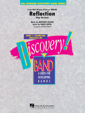 Reflection (from Mulan) Publisher: Hal Leonard Category: Band/Orchestra/Ensemble Series: Discovery Concert Band Format: Paperback Touching ballad from Disney's Mulan. Inventory # : 08724480 UPC: 73999876383 ISBN: Width: 9" Length: 12" Height: 0.312" Product Weight: 1 lbs....Regular price $47.99 -
