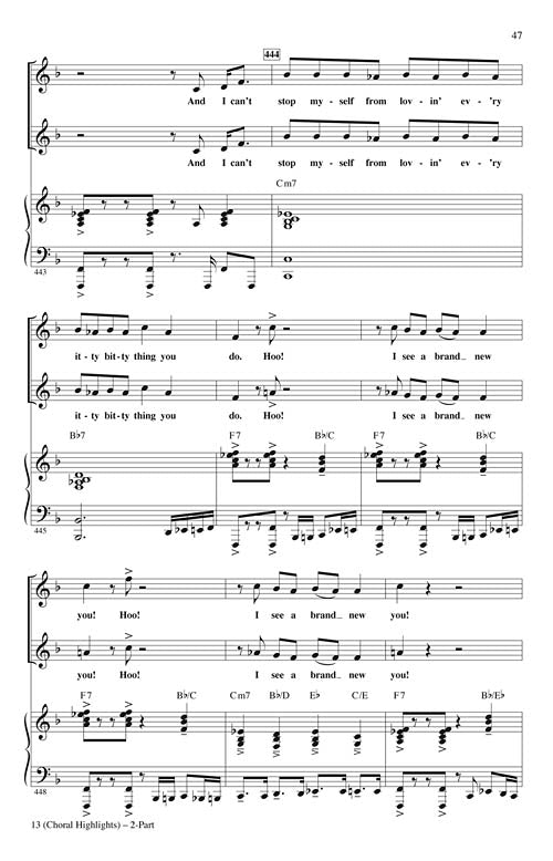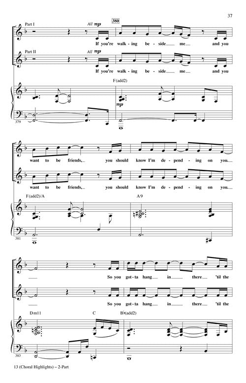 Evan has six weeks to go before he turns 13, and after an idyllic childhood in New York City, he's just been uprooted and brought to Appleton, Indiana with his mother. He has one mission: get all the cool kids in school to come to his Bar Mitzvah, or else spend the rest of his academic career banished to the land of the Geeks. 13 is a show about finding out who you are, finding out what you need, and finding out what's really important. In this 14-minute medley, choirs will enjoy both the angst and the excitement of this pivotal time of growing up. Songs include: All Hail the Brain, Bad Bad News, Brand New You, Getting Ready, The Lamest Place in the World, A Little More Homework, Thirteen, What It Means to Be a Friend. Available separately: SATB, 3-Part Mixed, 2-Part, ShowTrax CD. Rhythm Section parts available as a digital download (syn, gtr 1-2, b, dm). Duration: ca. 14:00.
