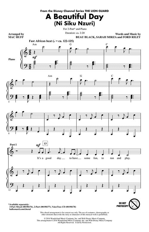 From the Disney Channel movie The Lion Guard: Return of the Roar, this uptempo number is filled with amazing energy and spirit. Including both English and easily learned Swahili lyrics, this joyful celebration makes a fantastic opening selection for younger choirs!
