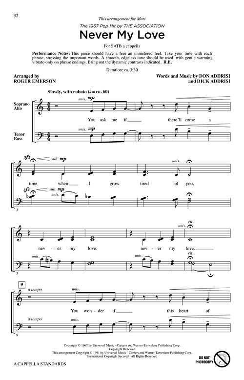 This collection delivers plenty of musical flair at a value! Perform these popular pop and jazz classics arranged for a cappella voices and use as a curriculum with your vocal jazz group. And there's more! Purchase the 12-Pak and receive a code to access demo and learning tracks online through My Library. Includes: Here's That Rainy Day, I Wish You Love, Imagine, In My Life, My Funny Valentine, Never My Love, Over the Rainbow, Vincent (Starry Starry Night).