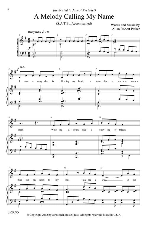 This choral piece uses canons to create a showcase for choirs that is absolutely irresistible! The captivating melody dances in your imagination until you can't help but sing along!