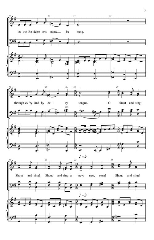 Bouncing back and forth between 6/8 and 3/4 gives this new song a lively lilt. The text of Isaac Watts remains fresh and clear under Dale Peterson's musical care. This is a delightful church anthem of easy to medium difficulty.