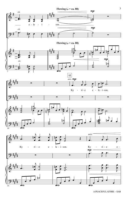 Incorporating the traditional Kyrie and Agnus Dei texts, this meditative setting creates a peaceful flowing effect through harmonic richness and gentle modal sonorities. Excellent for building choral tone, blend and intonation!