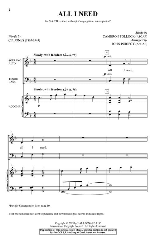 This octavo is a testimony of assurance and faith, reflecting a sensitive pairing of message and music. An approachable arrangement enables quick learning, yet provides expressive potential for choral ensembles of any size. This anthem would make a great companion to a sermon on life priorities and spiritual prosperity, reminding us that God's grace is sufficient for every need. Thoughtful!