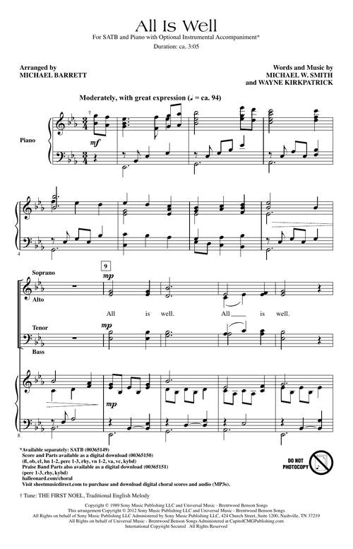 A modern classic, this contemporary song combines a beautiful theme with words of assurance and comfort. Affirming the promises of God's peace and protection, the text is a favorite of many, and the music is soothing and reassuring. Remind your people of this treasured hymn and its message of hope and grace. Score and Parts (fl, ob, cl, hn 1-2, perc 1-3, rhy, vn 1-2, va, vc, kybd) available as a digital download. Parts for Praise Band (perc 1-3, rhy, kybd) also available as a digital download.
