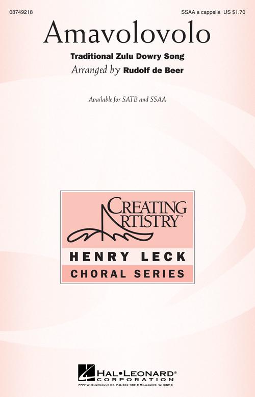 Here is a popular Zulu traditional song as arranged by Rudolf de Beer, former conductor of the Drakensberg Boys Choir of South Africa. What a vivid connection to the people and culture of that part of the world! Authentic percussion and movement suggestions give this selection great visual appeal. Available separately: SATB, SSAA. Duration: ca. 1:50.