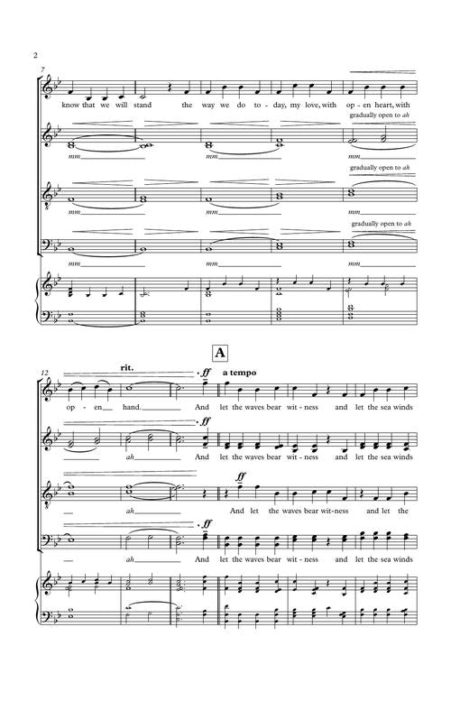 And Let the Waves Bear Witness is written for SATB voices and set to two poems on love and empowerment.