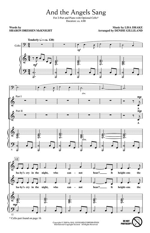A tender reflection on God's grace at Christmastime, this sacred selection is an excellent selection for women's choirs from upper middle school to adult. The lyrical piano and cello accompaniment supports the voices in the joyful refrain: and the angels sang peace on earth. Available for 2-Part. Duration: ca. 4:00.