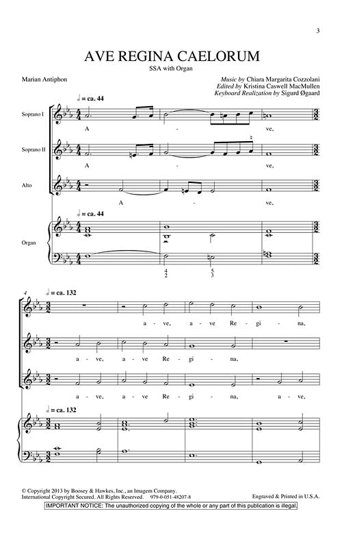 This beautiful work by the 17th century female composer Chiara Margarita Cozzolani (1602-1678) is sophisticated and accessible and a perfect vehicle for introducing this important musical period to your treble choir. Duration: ca. 3 minutes 20 seconds.