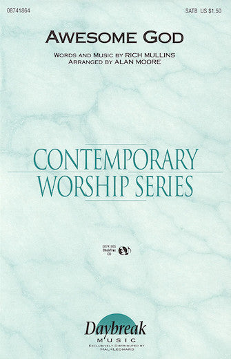 Made familiar by Steven Curtis Chapman, Awesome God has become a favorite for youth and adults alike, and Alan Moore's arrangement captures the spirit of the song. Available: SATB, ChoirTrax CD.