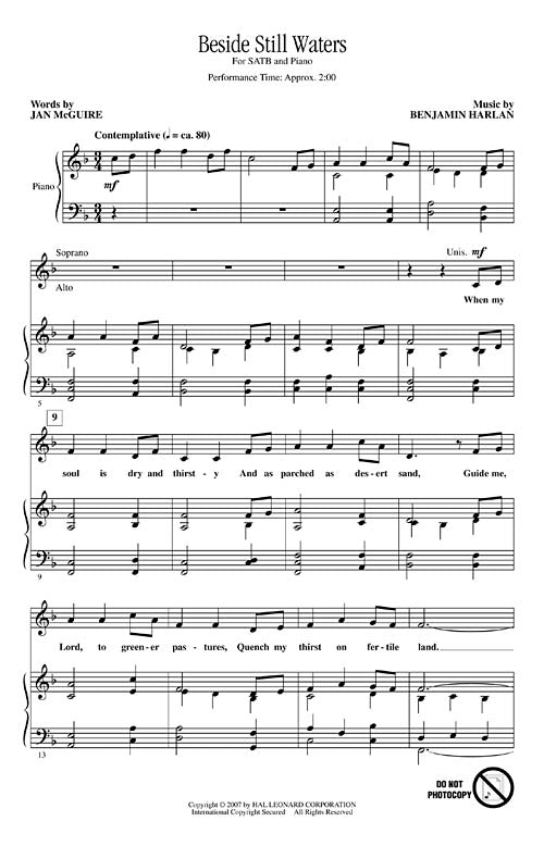 Gifted lyricist Jan McGuire has penned a moving text based on the Twenty-third Psalm set to a timeless melody by Benjamin Harlan. The style is beautifully reminiscent of the 19th Century American hymn tunes. The SATB writing is expressive and true to the simple and humble devotion of the lyric.