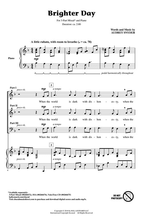 Master composer and educator Audrey Snyder knows the importance of hope in the lives of young people. In this original song she lifts up the need for hope of a brighter day.