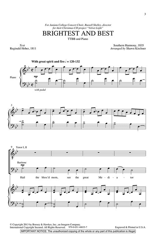 This lively arrangement for TTBB chorus and piano is based on a sturdy American hymn tune with a text by Reginald Heber. A banjo inspired piano accompaniment provides sparks while the tune is presented first in unison, then in canon, next adorned with mirrored countermelodies, with the refrains growing in intensity following each verse, culminating in a dramatic, a cappella outburst. Duration: 2:15.