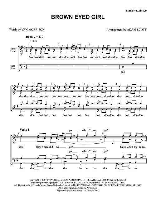 Brown Eyed Girl Barbershop Harmony Society Ttbb A Cappella Van Mo