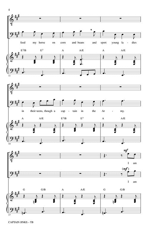 This 19th century soldiers' song paints a humorous view of army life and will be a fun, tongue-in-cheek novelty for a young male choir! Great for staging/choreography and adding a comedic touch to your next concert!