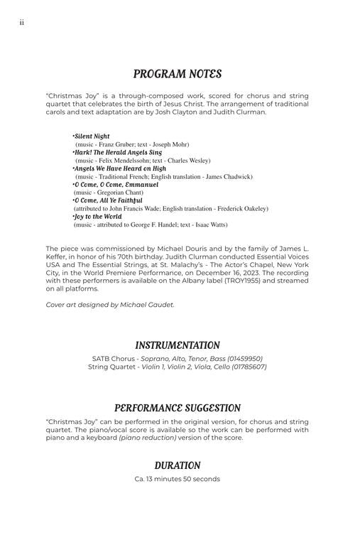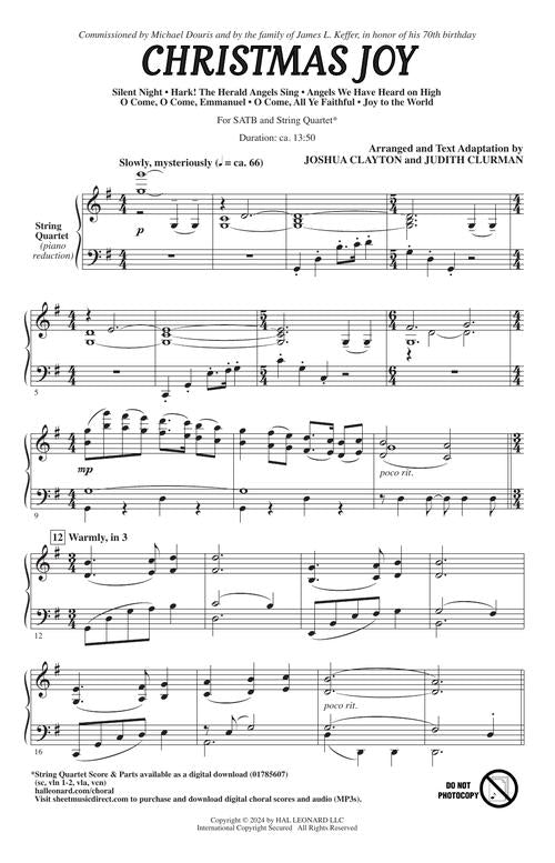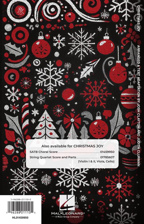 Premiered in New York City by Essential Voices USA at St. Malachy's, Chrismas Joy is a montage of traditional and familiar Christmas Carols, expertly arranged by Judith Clurman and Josh Clayton. This through-composed medley is 13 minutes of pure choral holiday joy!